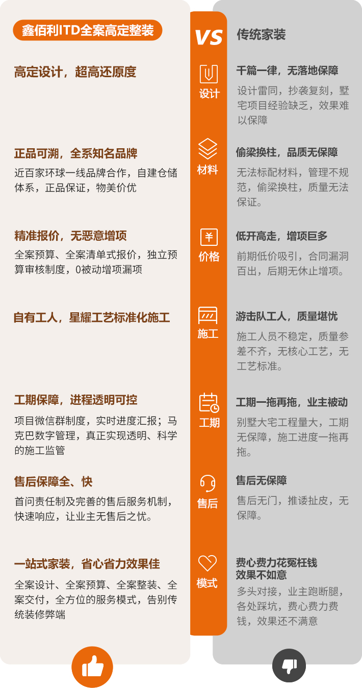 85条材料要求,168项施工细节,自有施工工人,标准化墅宅施工。