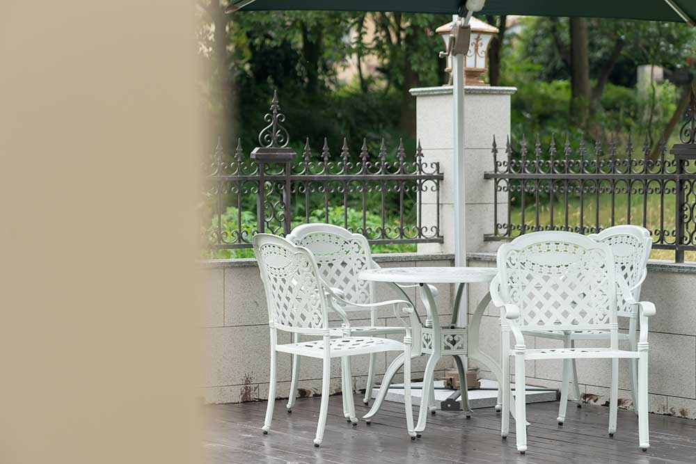 由浪漫白色桌椅围合成户外聚会区域,这将是你与朋友和家人举办精彩派对的好地方,你可以享受所有的温暖和光彩。甚至如果你只是想与你爱的人或只是一两个朋友度过一个安静的夜晚。