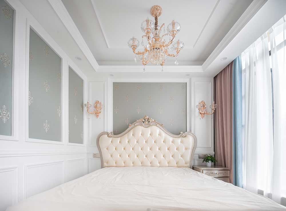 卧室以白色为基调,视觉主体干净而温和,轻奢水晶灯饰点缀,让每一个物件富有艺术灵性,当背景画幅介入时,让起居环境更添意境的享受。